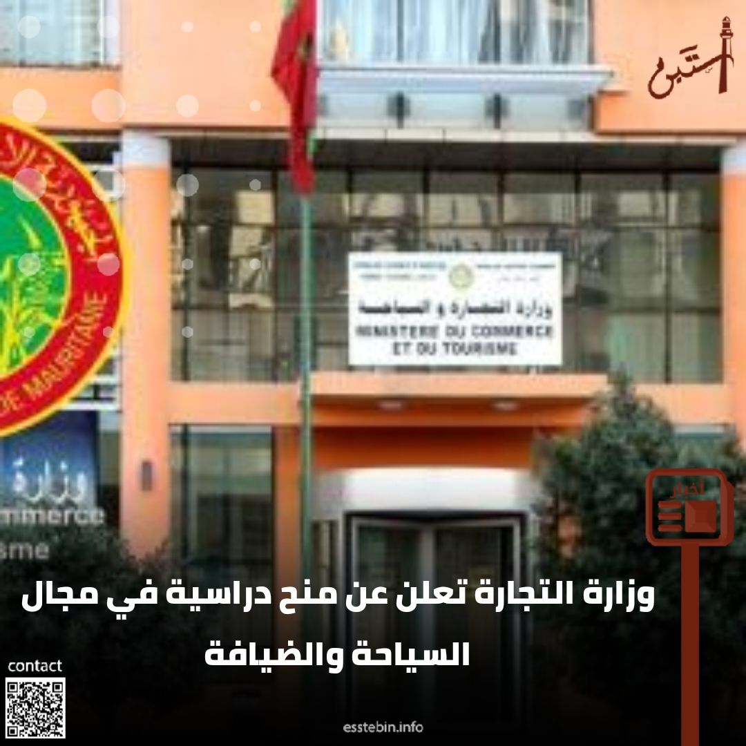 في إطار دعم التعاون الدولي وتعزيز قدرات الشباب، تعلن وزارة التجارة والسياحة، بالتنسيق مع منظمة التعاون الإسلامي، عن إتاحة مائة (100) منحة دراسية لفائدة الشباب الموريتاني الراغبين في التخصص في مجالات السياحة والضيافة.
