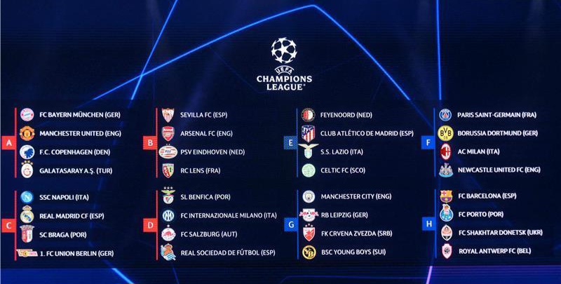 أما ريال مدريد يصطدم بالعملاق الإيطالي نابولي، بجوار سبورتينج براجا ويونيون برلين.