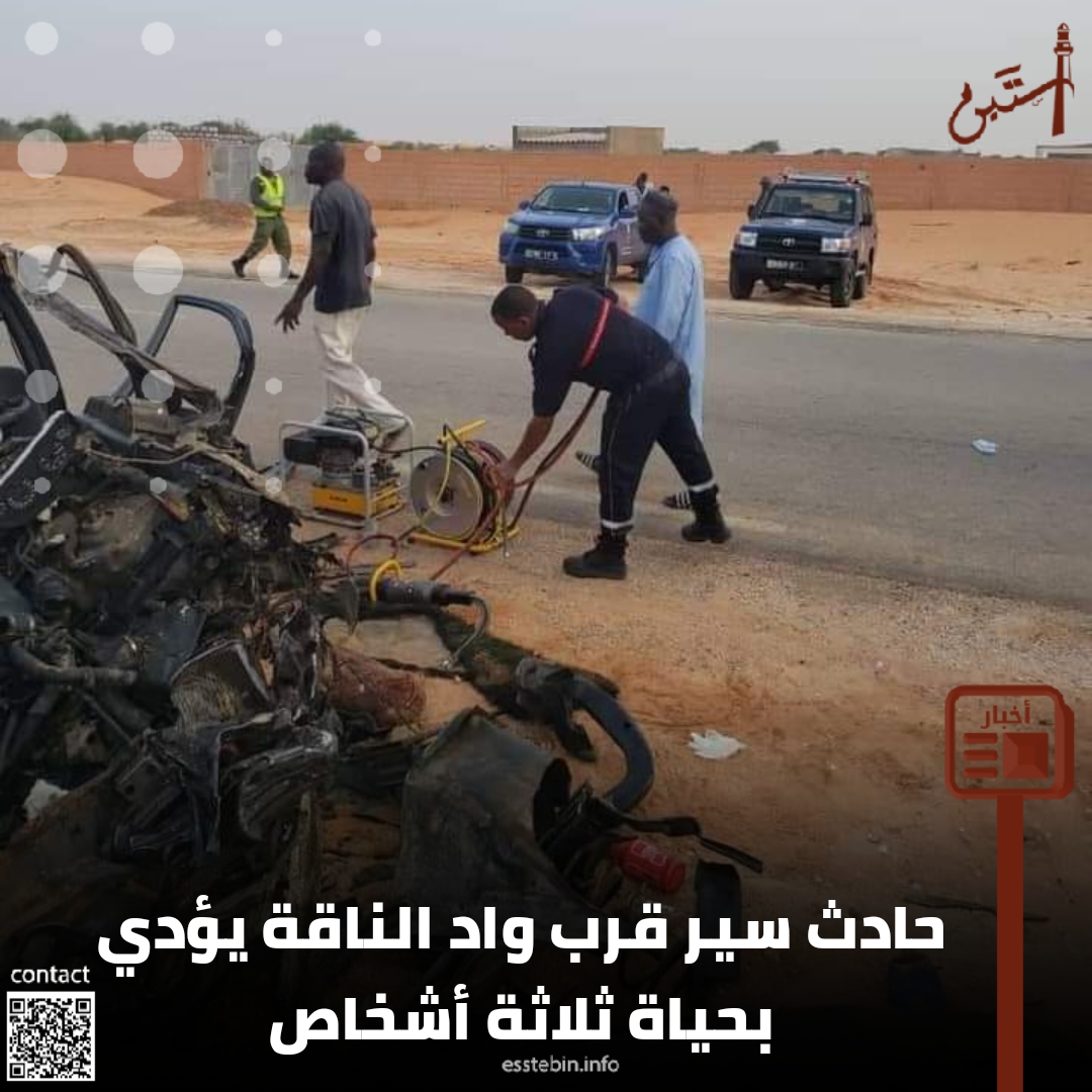 استبن (نواكشوط) - توفي ثلاثة أشخاص في حادث سير قرب مدينة واد الناقة اثر اصطدام سيارة صغيرة بشاحنة.