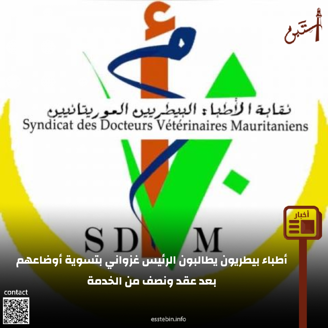 طالب الدكاترة البيطريون مفتشوا اللحوم و الأطباء البيطريون المسؤولون عن التلقيح الصناعي و إدارة المزارع في جميع الولايات والتابعون لإدارة المصالح البيطرية و المكتب الوطني للبحوث و تنمية الثروة الحيوانية و النظام الرعوي رئيس الجمهورية محمد الشيخ الغزواني بتسوية وضعيتهم .