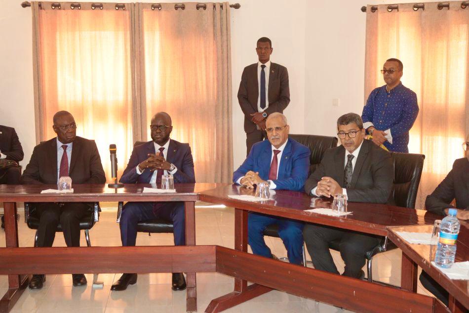 استقبل المدير العام لميناء نواكشوط المستقل -ميناء الصداقة-، سيد محمد محم صباح اليوم رئيس الجمعية الوطنية الموريتانية محمد بمب مكت رفقة نظيره رئيس الجمعية الوطنية السنغالية السيد مالك انجاي، والوفد المرافق له.