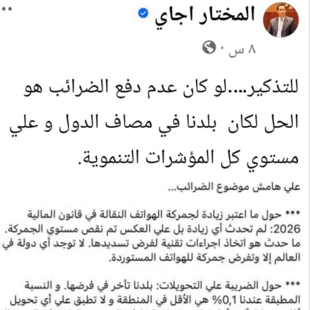 انتقد الوزير الأول المختار ولد اجاي، ضمنيا الجدل المثار بشأن القرار المتعلقة بجمركة الهواتف والضريبة على التحويلات في ميزانية 2026.