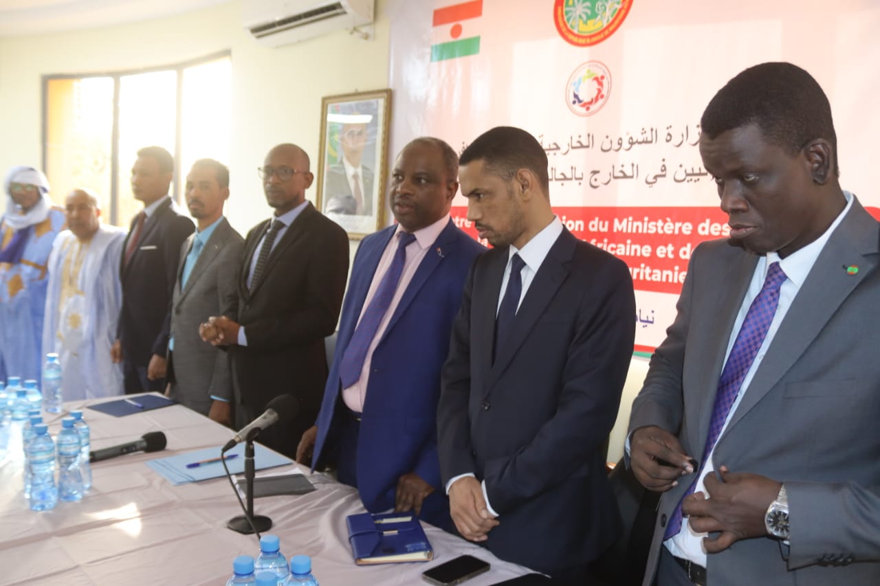 استبن ( نواكشوط ) - في إطار زيارات الاتصال والتشاور مع الجاليات الموريتانية في الخارج التي أطلقتها وزارة الشؤون الخارجية والتعاون الافريقي والموريتانيين في الخارج خلال الأشهر الماضية، ضمن تحضيراتها لتنظيم منتدى الجاليات الموريتانية في نسخته الأولى، عقدت بعثة من الوزارة اجتماعا بالجالية المقيمة بجمهورية النيجر وذلك مساء الأحد في مباني السفارة الموريتانية بانيامي.