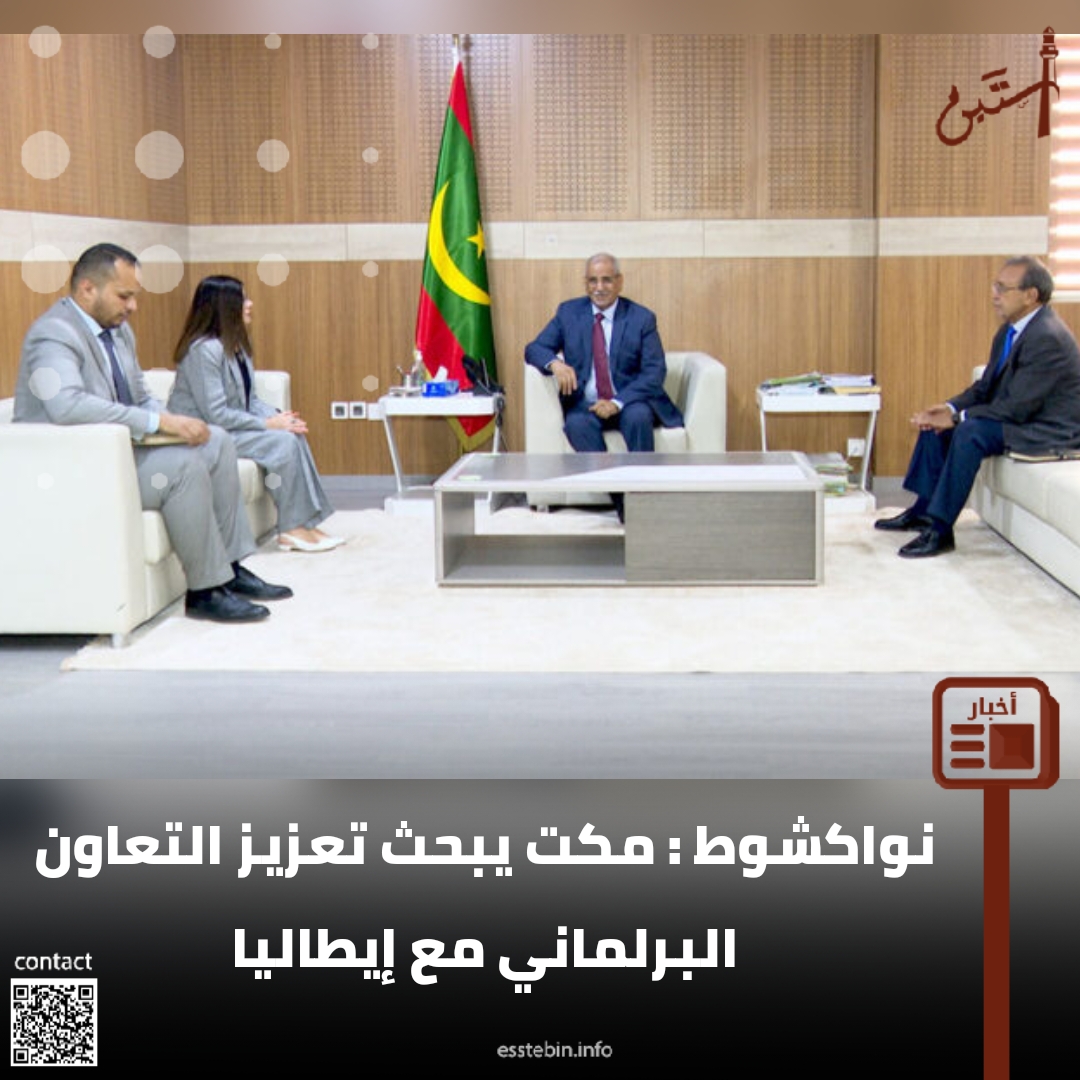 بحث رئيس الجمعية الوطنية، محمد بمب مكت، اليوم الثلاثاء، مع السفيرة الإيطالية المعتمدة لدى موريتانيا، باولا ماريا كريستينا روسو، سبل تعزيز علاقات الصداقة والتعاون بين موريتانيا وإيطاليا.