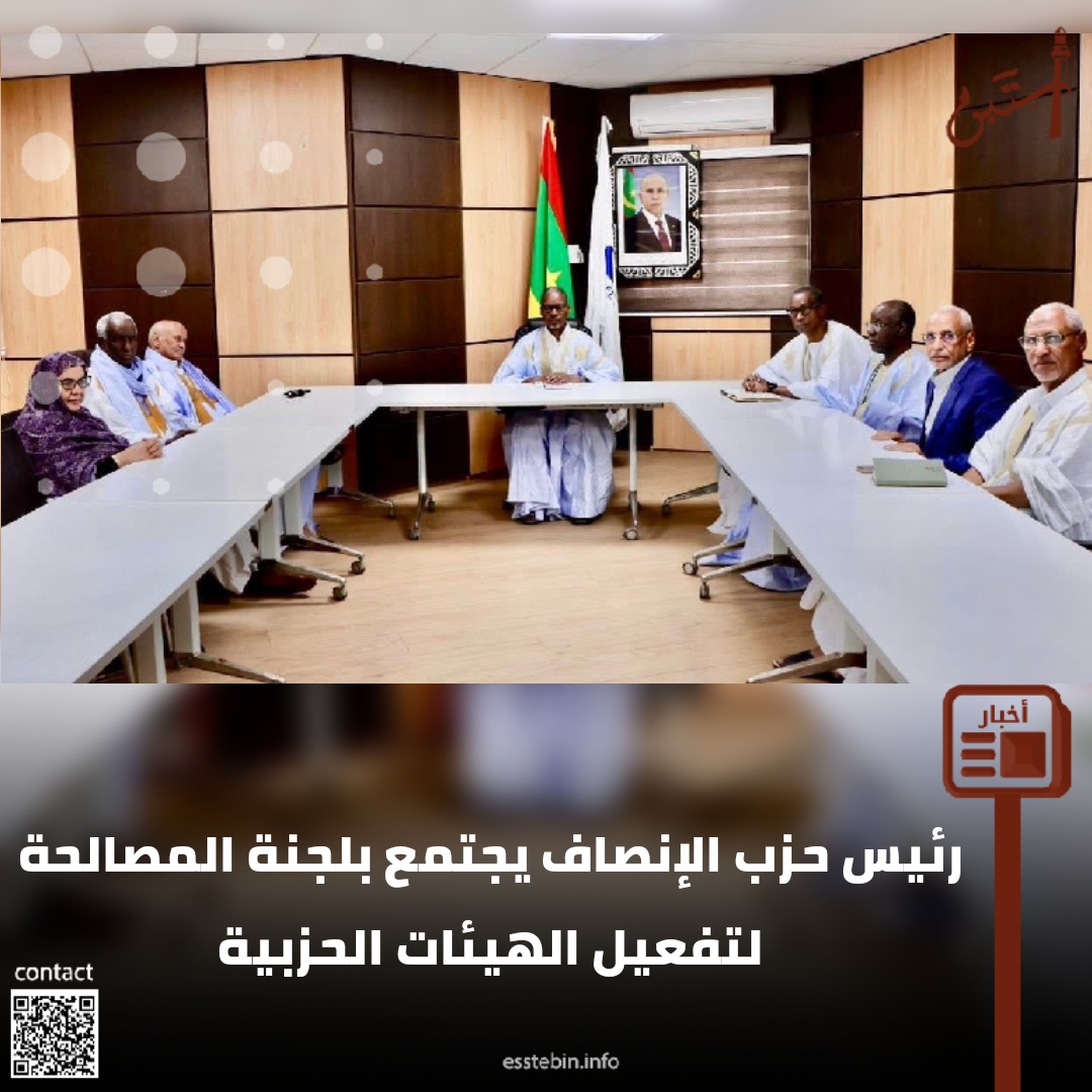 اجتمع رئيس حزب الإنصاف، محمد ولد بلال مسعود، اليوم الثلاثاء مع لجنة المصالحة والتحكيم للحزب، في إطار جهود تفعيل هيئات الحزب وتعزيز الانضباط التنظيمي وترسيخ الحكامة المؤسسية.