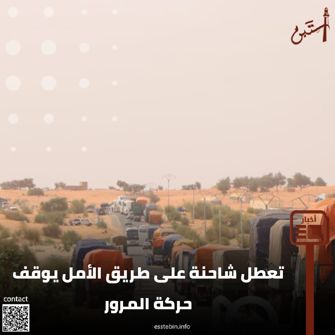 تسبب تعطل شاحنة عند الكلم 100 من العاصمة نواكشوط على طريق الأمل في ازدحام كبير للشاحنات وسط تباطؤ شديد في حركة السير.
