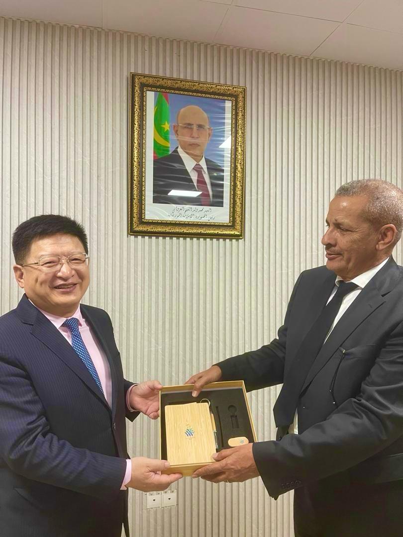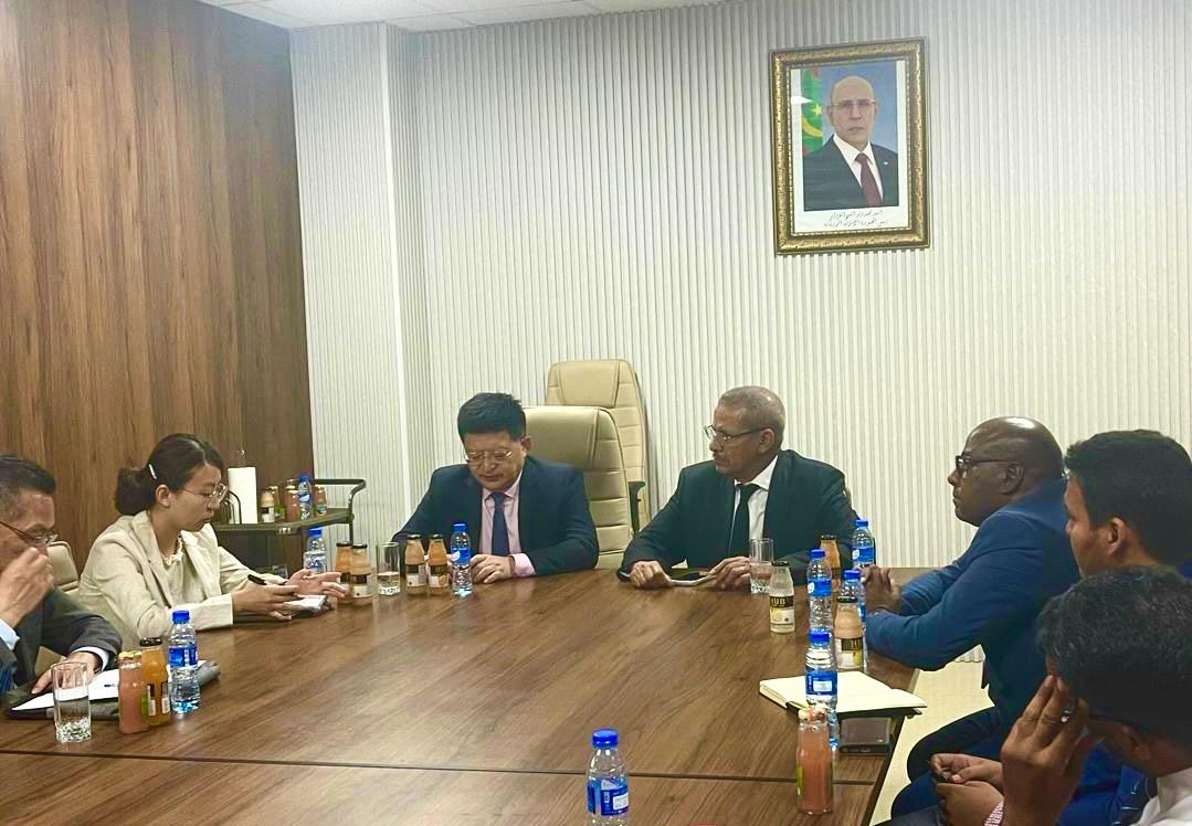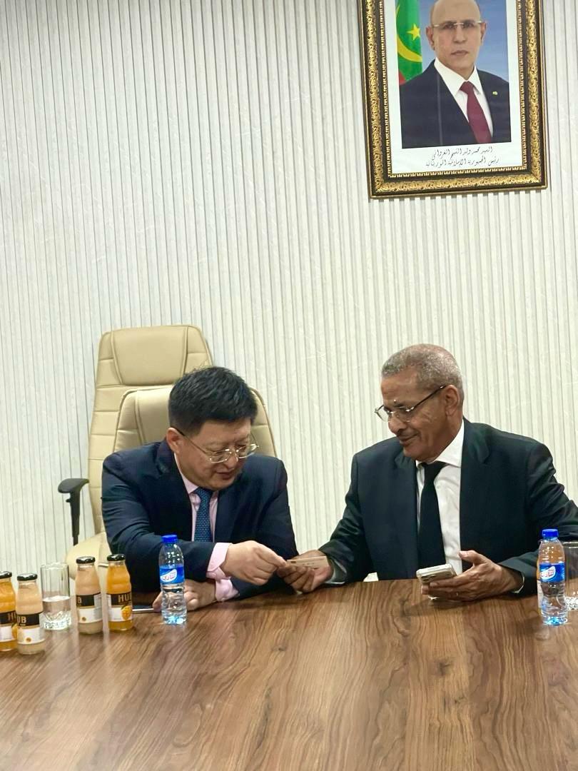 استقبل المدير العام لميناء نواكشوط المستقل، لمرابط بناهي، محاطًا بمعاونيه، سعادة سفير جمهورية الصين الشعبية لدى موريتانيا، تانغ زونغ دونغ، مرفوقا باثنين من معاونيه، وذلك في إطار زيارة رسمية تهدف إلى تعزيز علاقات التعاون بين الجانبين.