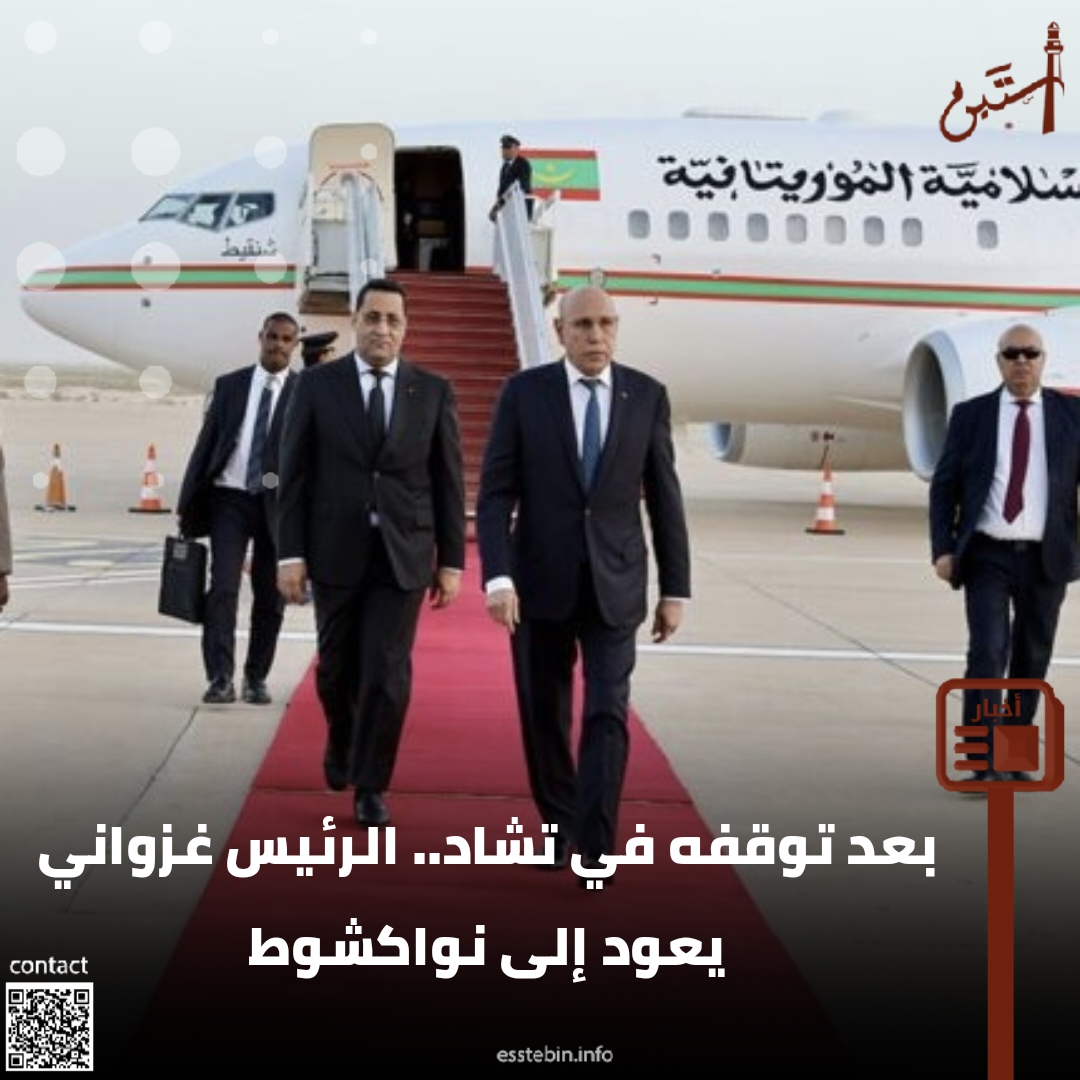 عاد الرئيس محمد ولد الشيخ الغزواني، اليوم الثلاثاء، قادما من جولة خارجية شملت دولة الإمارات العربية المتحدة والمملكة العربية السعودية، وتخللها توقف في العاصمة التشادية إنجامينا خلال رحلة العودة.